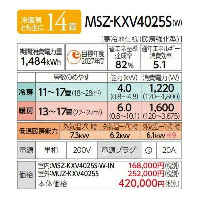 三菱電機 ズバ暖霧ヶ峰 KXV シリーズ MSZ-KXV4025S